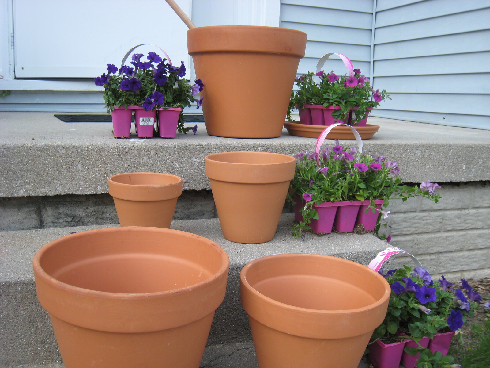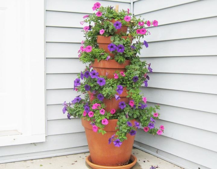 Якщо в саду або на веранді мало місця, можна зробити дуже красиву гірку зі звичайних квіткових горщиків.